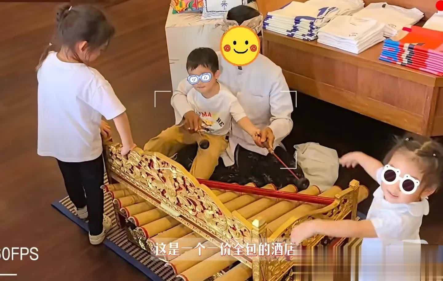小女儿看上去两三岁,比哥哥矮些,扎着多个小揪揪,身着白色短上衣,肉嘟嘟的,还有点婴儿肥。