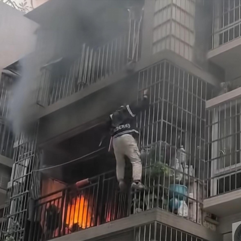 南都此前报道,10月21日,广州天河车陂一居民楼发生火情。视频显示,起火位置在广氮新村一居民楼的阳台,现场火势凶猛,不断有浓烟冒出。画面中一名男子手持灭火器,从居民楼外墙自上而下攀爬,抵达着火的阳台处,倚靠着阳台围栏,随即手持灭火器将明火扑灭。与此同时,旁边有群众不断提醒“小心啊小心!”