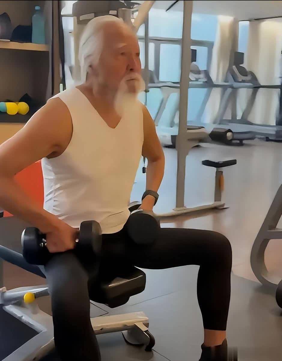 他60岁后开始健身,游泳、练器械、拉伸,一样不落,坚持二十多年,才有了年过八十仍健硕的身材以及远超同龄人的体能。